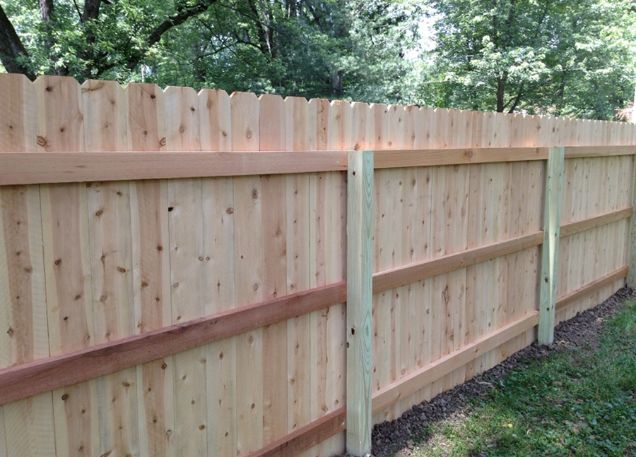 2.36.6. Double Fences. Two separate fence structures (i.e. separate posts and rails) bordering the same property line is not permitted. A two-sided privacy fence requires Committee approval. Pickets must share the same posts and side rails. Rear yard privacy fences may be constructed as a single row of posts with pickets on both sides..